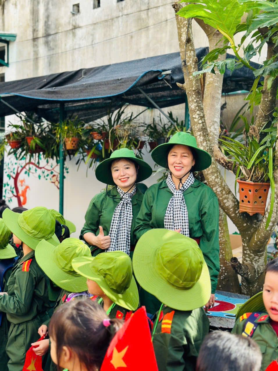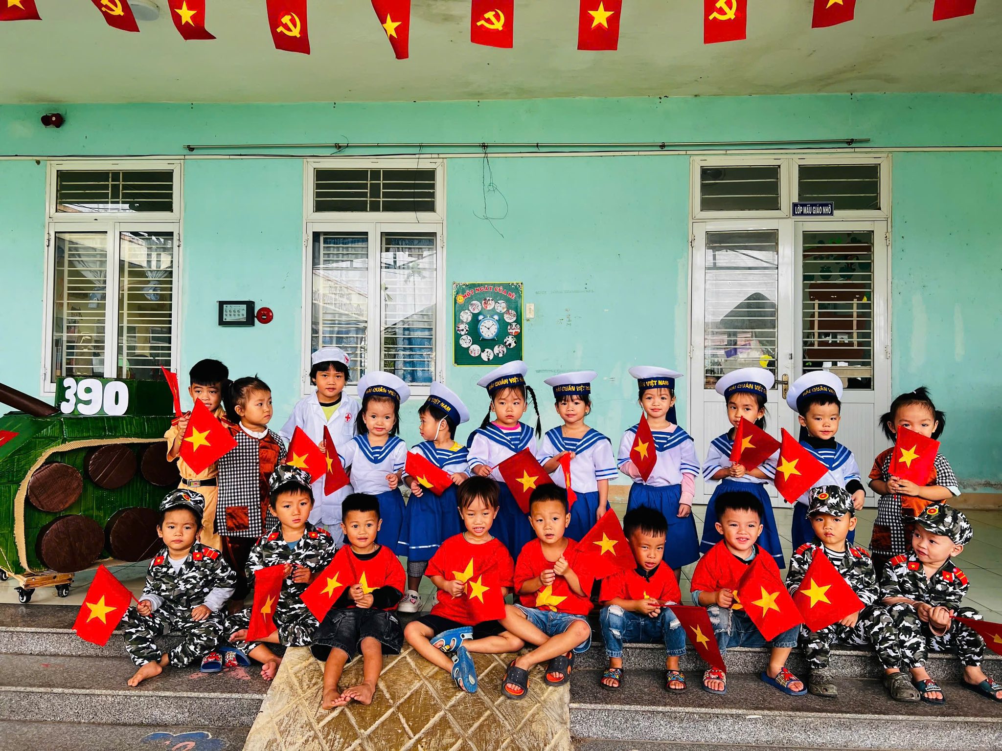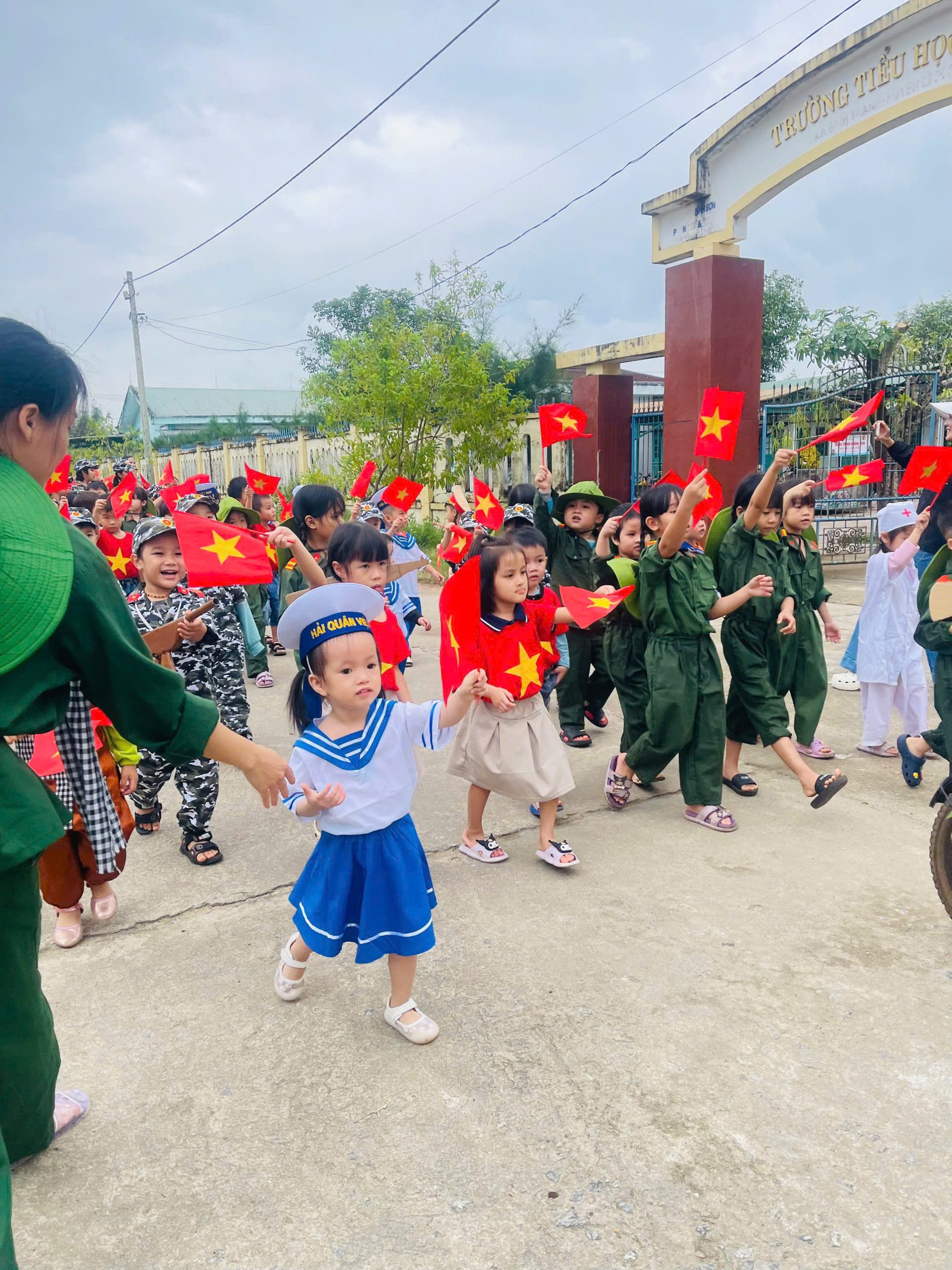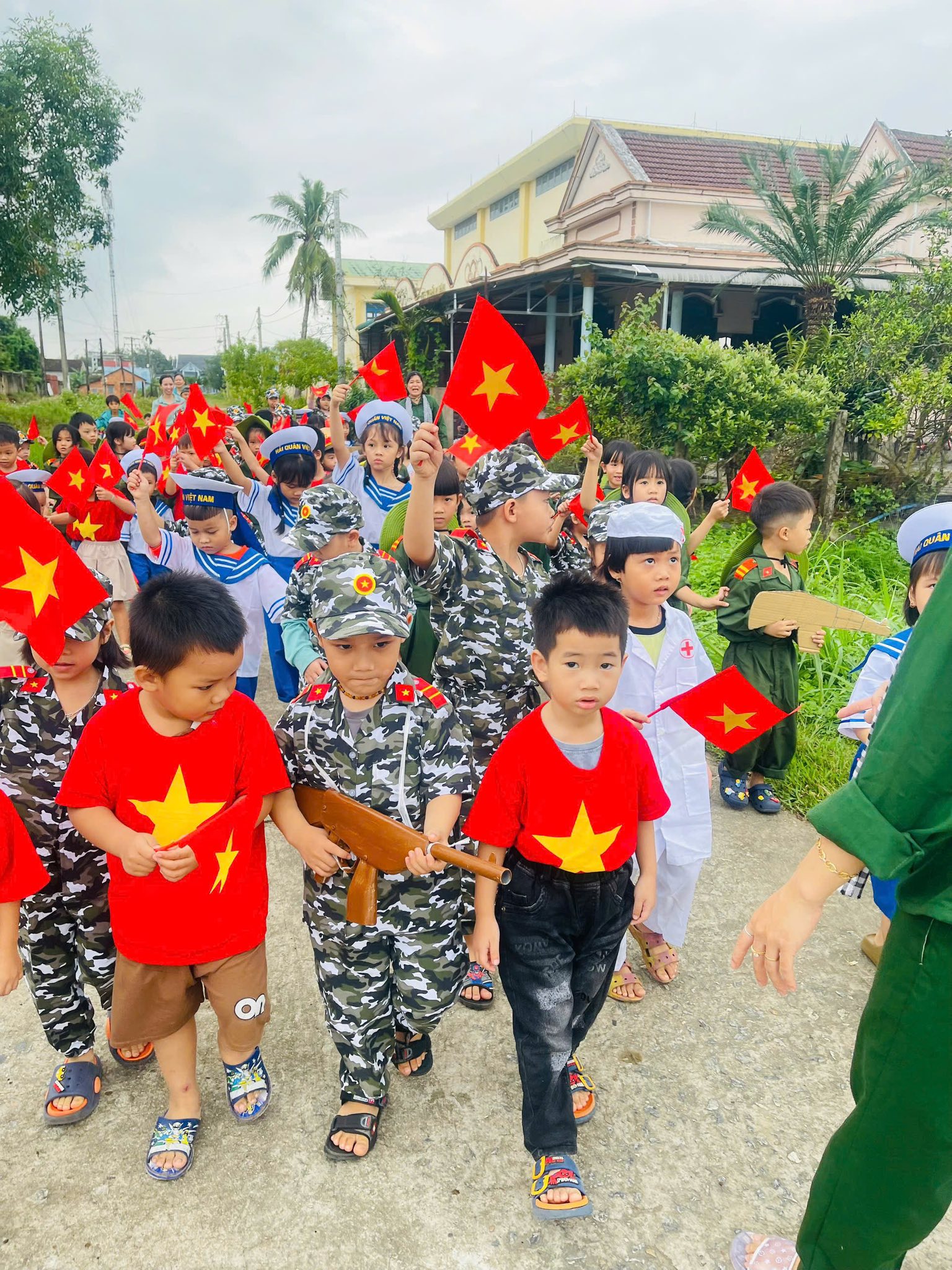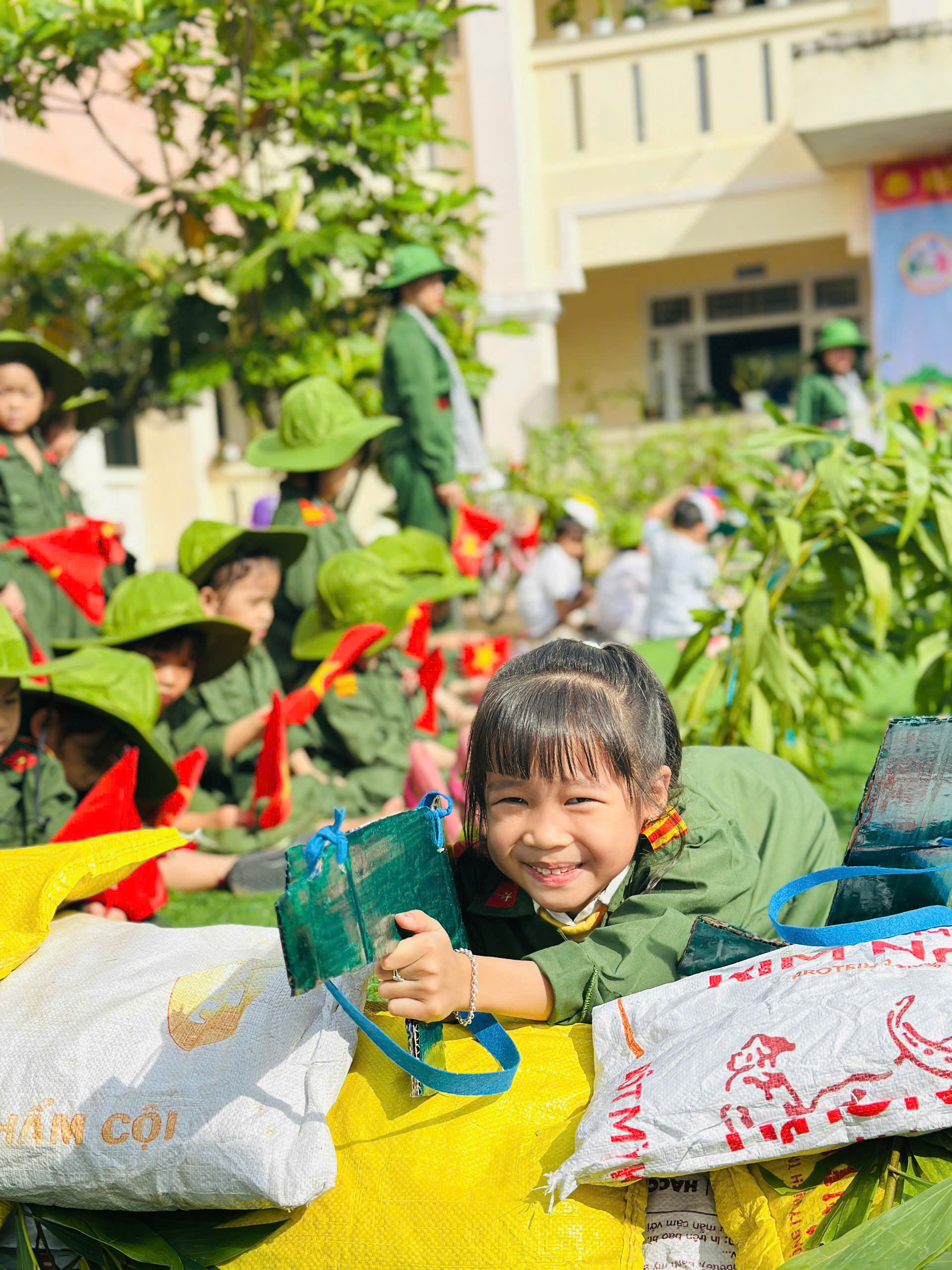 👧Khoác lên mình sắc xanh bộ đội thân quen, các bé hào hứng nhập vai những chiến sĩ tí hon. Từng bước chân hành quân ngộ nghĩnh, từng lời ca trong trẻo vang lên giữa sân trường đã vẽ nên một bức tranh sinh động, ngập tràn niềm vui, sự ấm áp và cảm xúc hồn nhiên của tuổi thơ