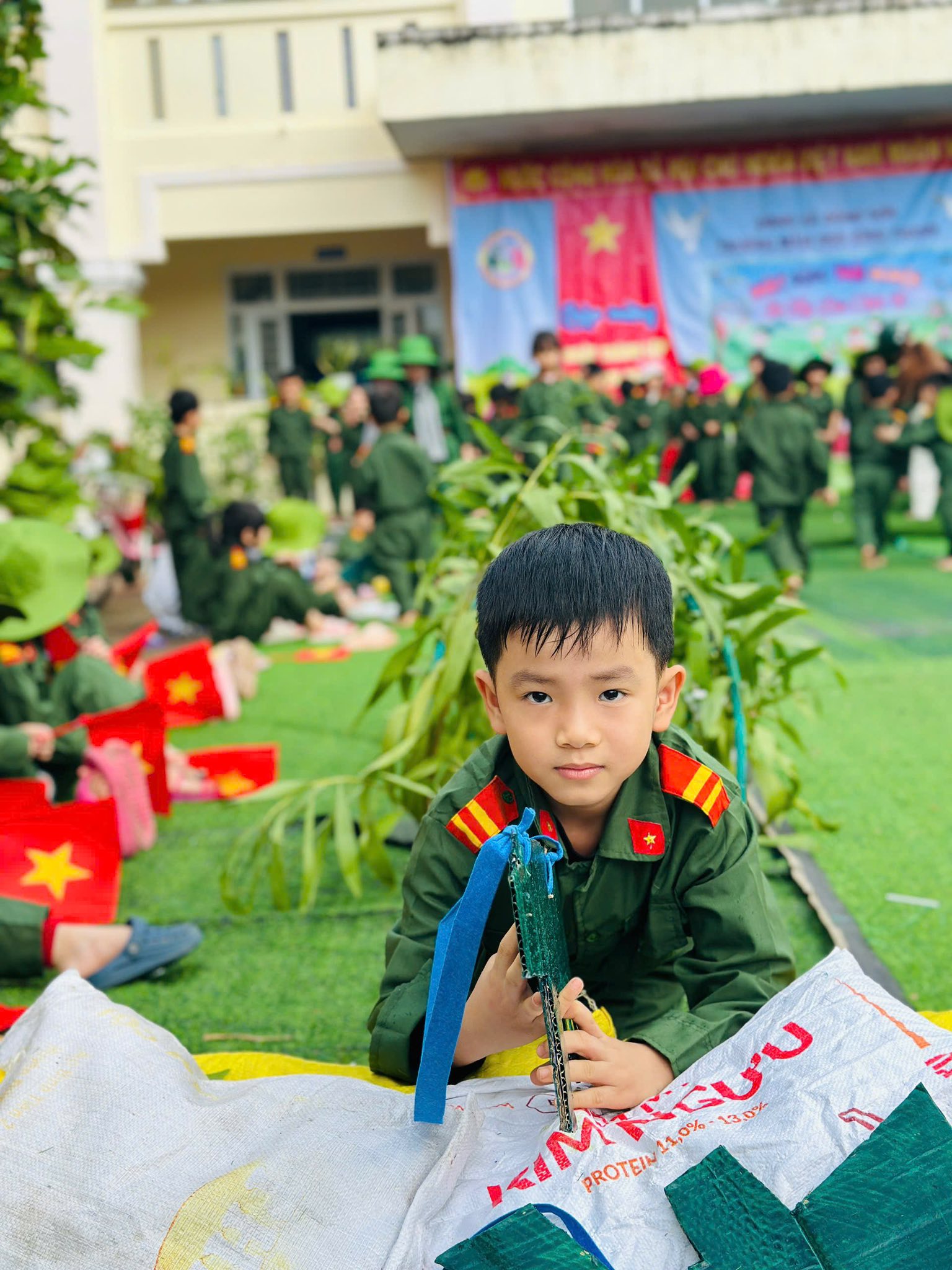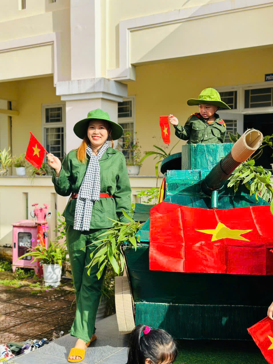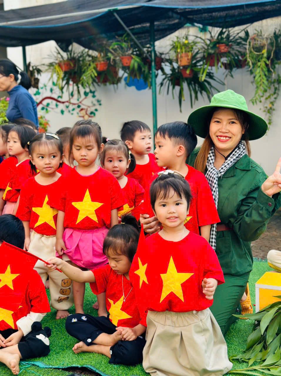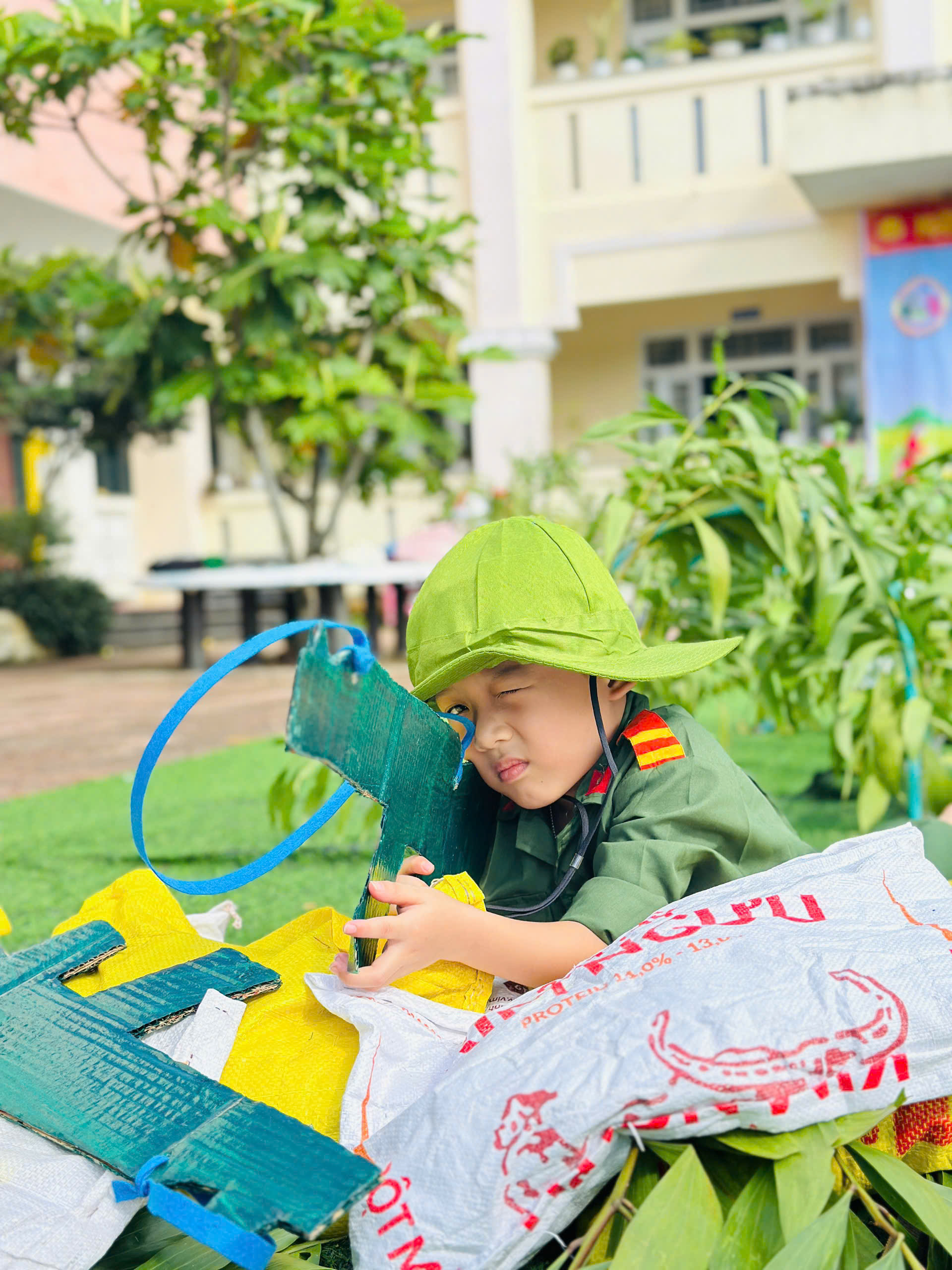 👧Khoác lên mình sắc xanh bộ đội thân quen, các bé hào hứng nhập vai những chiến sĩ tí hon. Từng bước chân hành quân ngộ nghĩnh, từng lời ca trong trẻo vang lên giữa sân trường đã vẽ nên một bức tranh sinh động, ngập tràn niềm vui, sự ấm áp và cảm xúc hồn nhiên của tuổi thơ