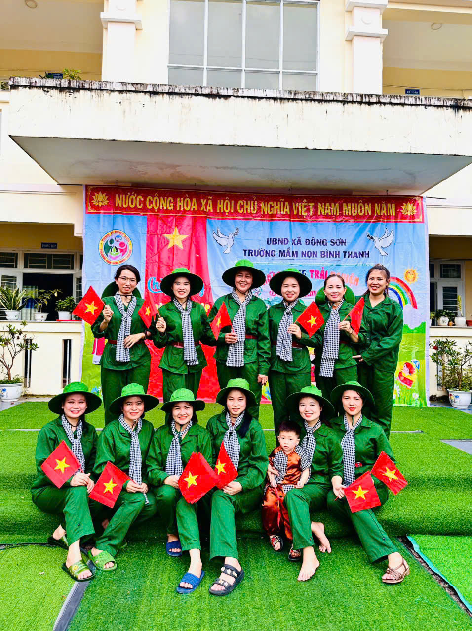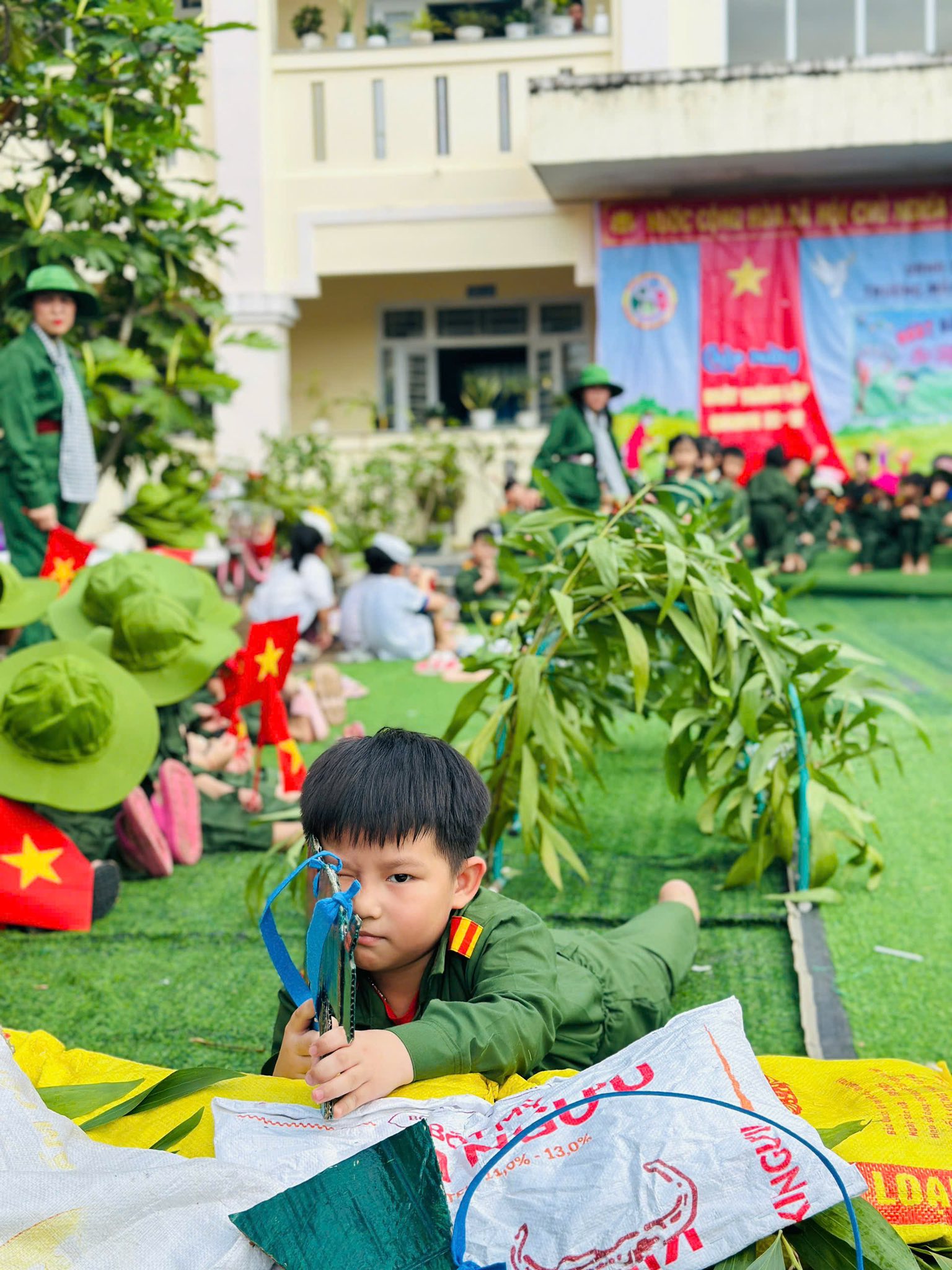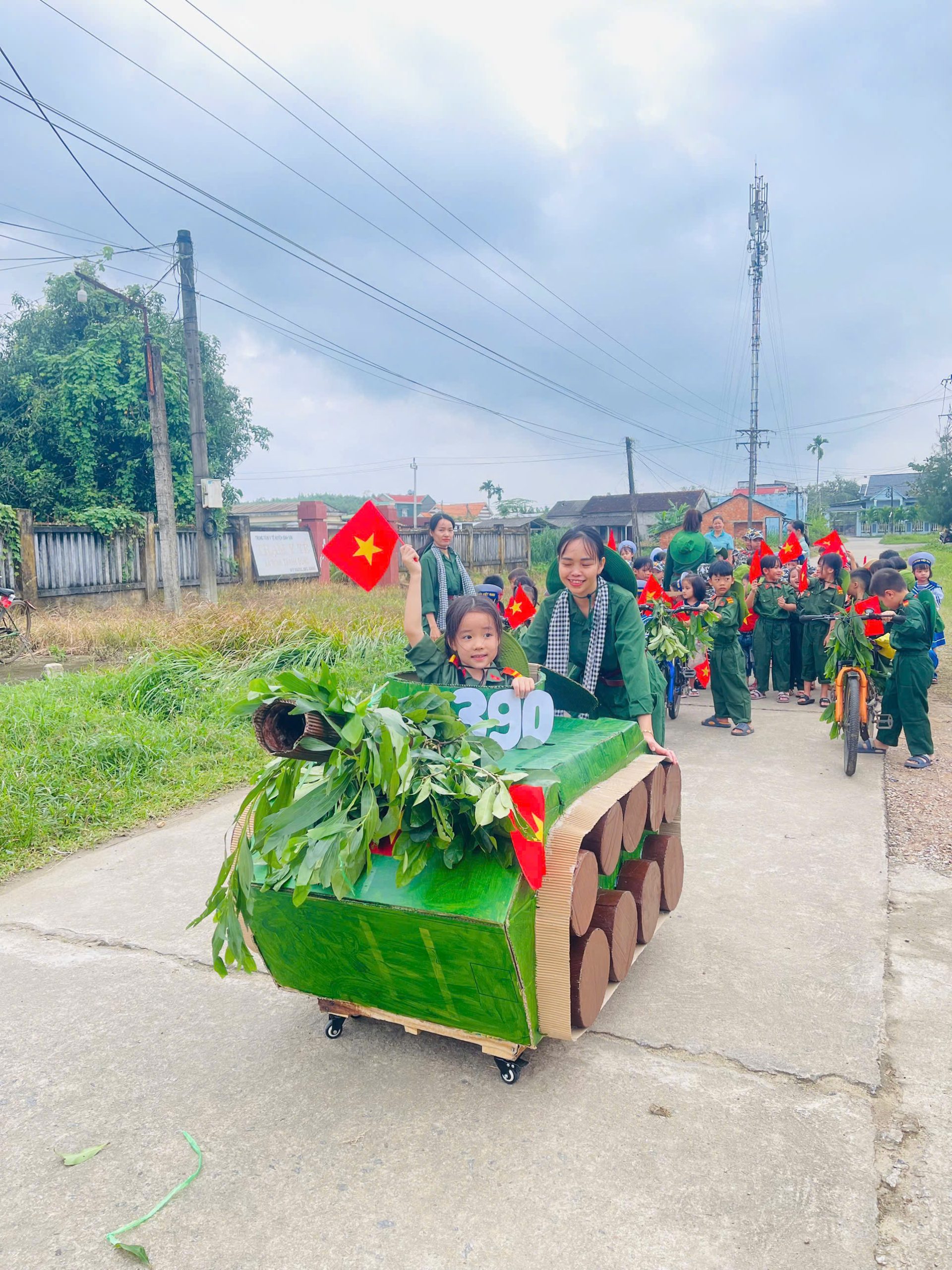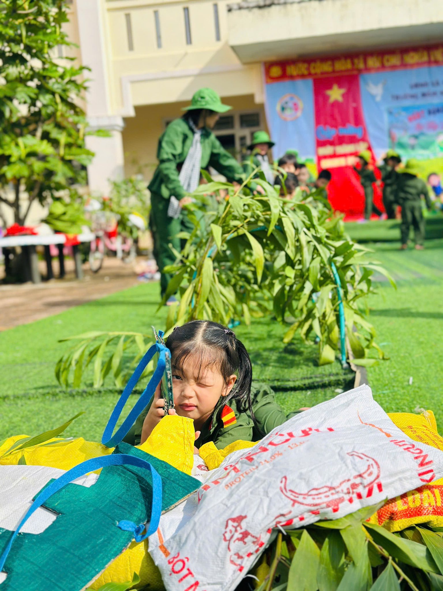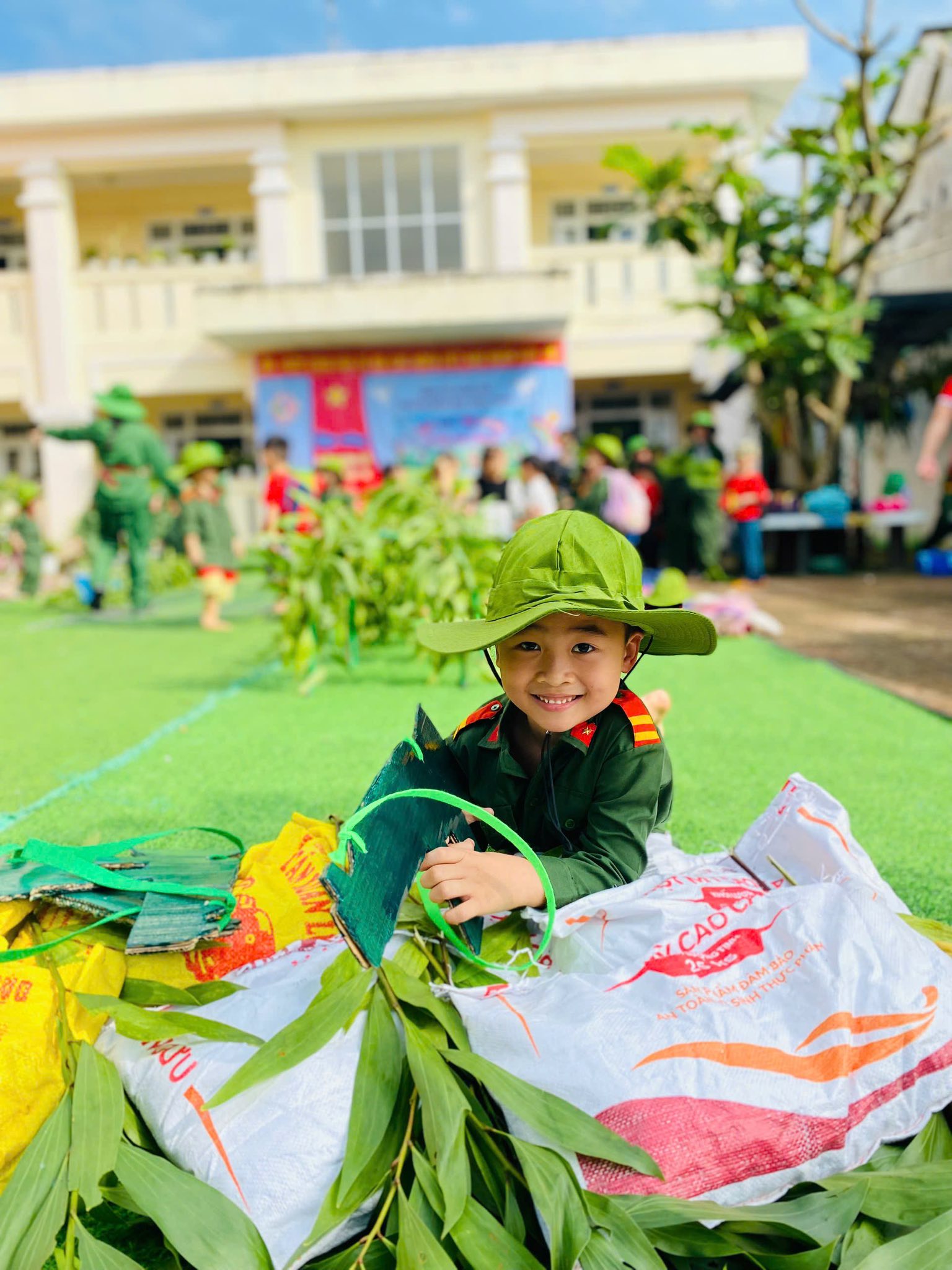 👧Khoác lên mình sắc xanh bộ đội thân quen, các bé hào hứng nhập vai những chiến sĩ tí hon. Từng bước chân hành quân ngộ nghĩnh, từng lời ca trong trẻo vang lên giữa sân trường đã vẽ nên một bức tranh sinh động, ngập tràn niềm vui, sự ấm áp và cảm xúc hồn nhiên của tuổi thơ