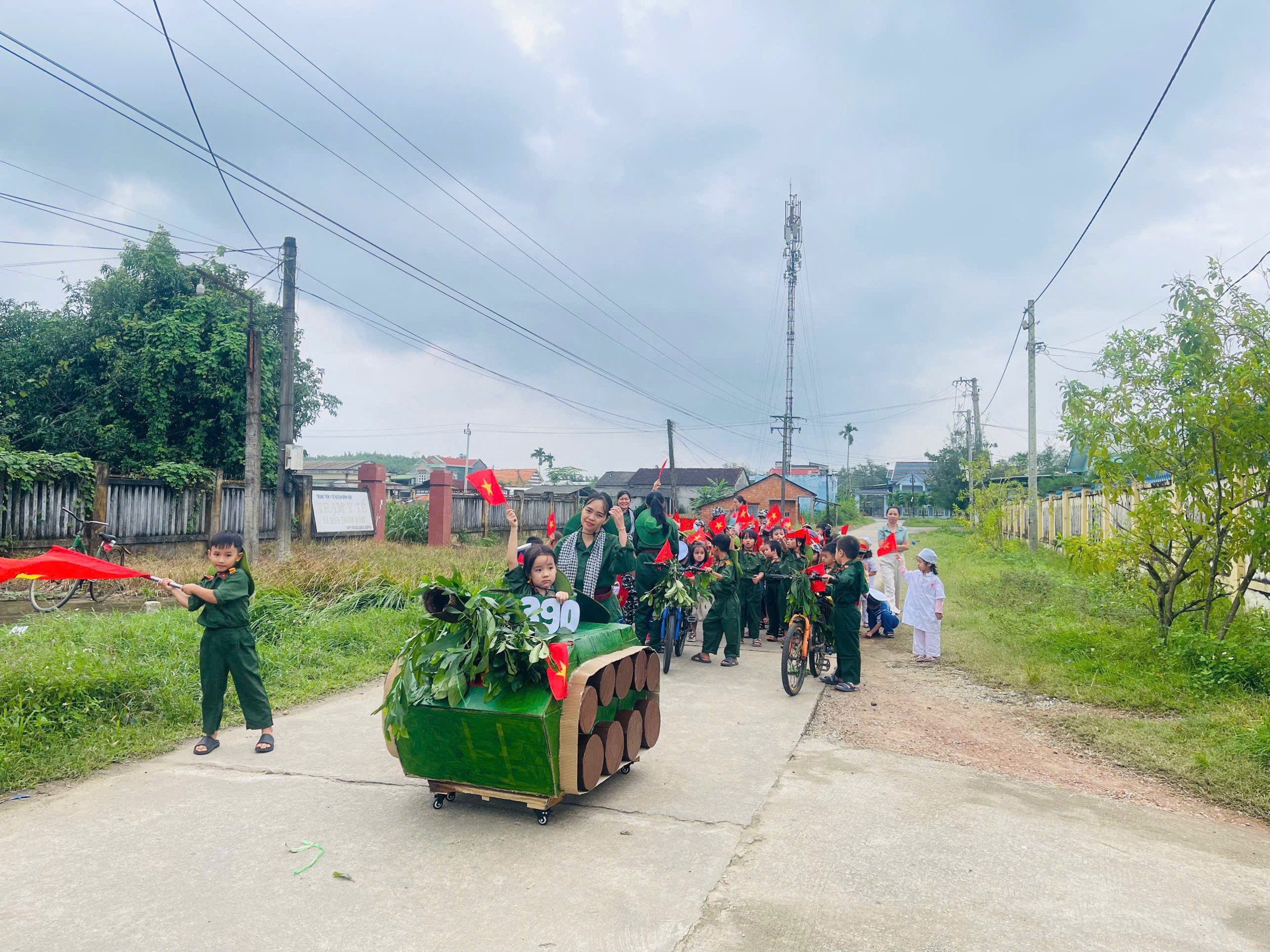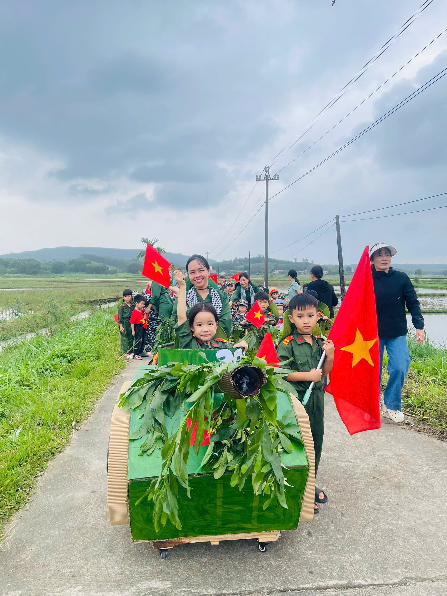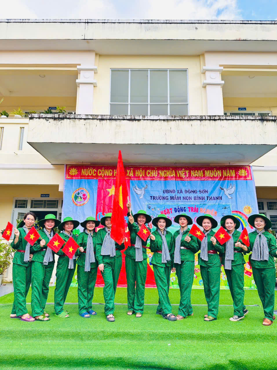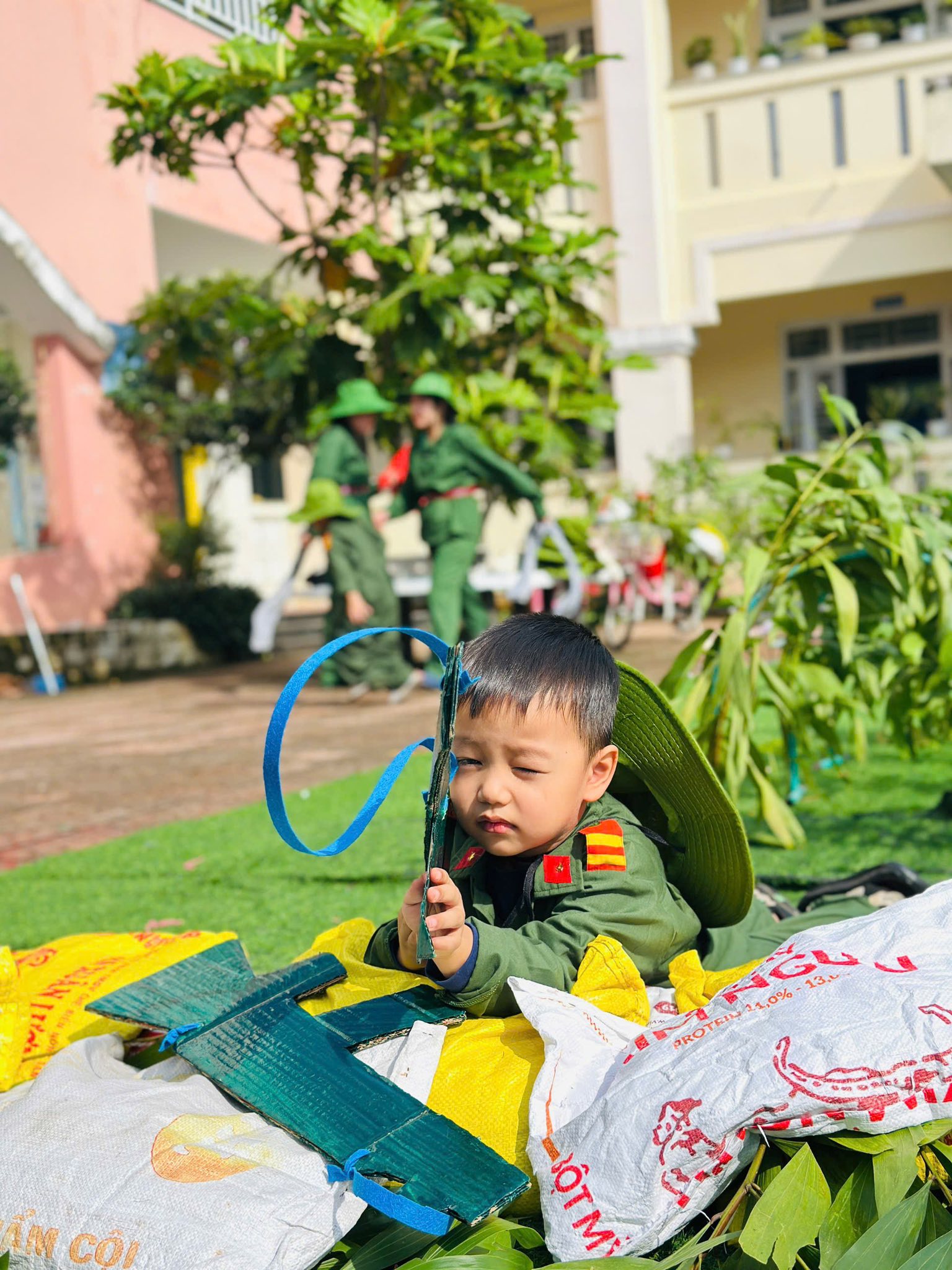 👧Khoác lên mình sắc xanh bộ đội thân quen, các bé hào hứng nhập vai những chiến sĩ tí hon. Từng bước chân hành quân ngộ nghĩnh, từng lời ca trong trẻo vang lên giữa sân trường đã vẽ nên một bức tranh sinh động, ngập tràn niềm vui, sự ấm áp và cảm xúc hồn nhiên của tuổi thơ