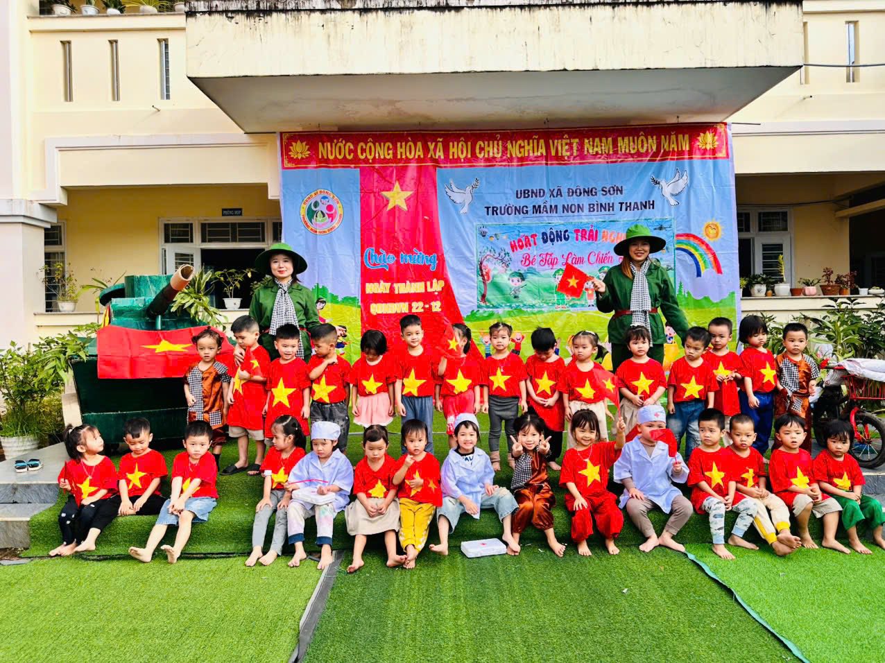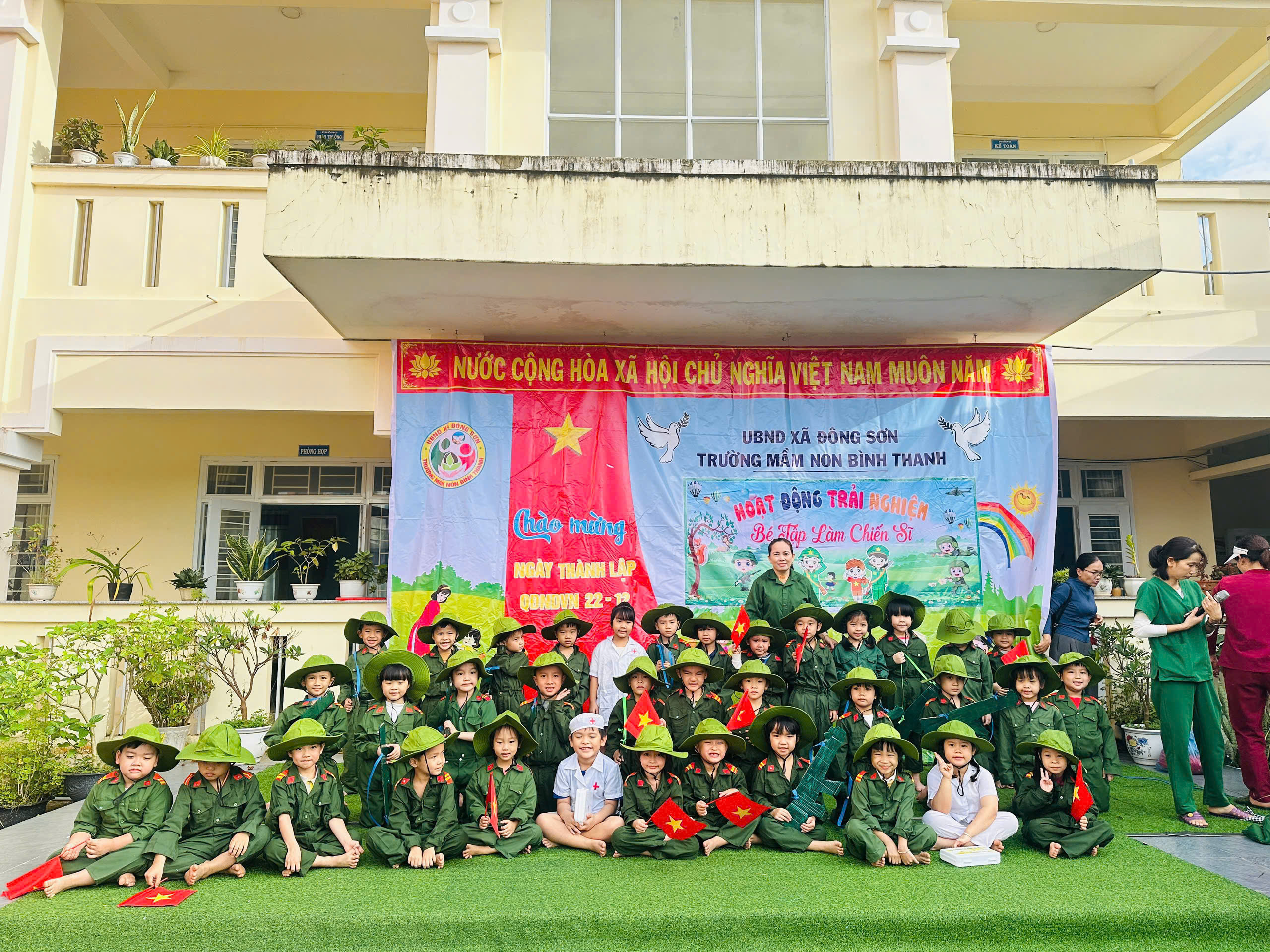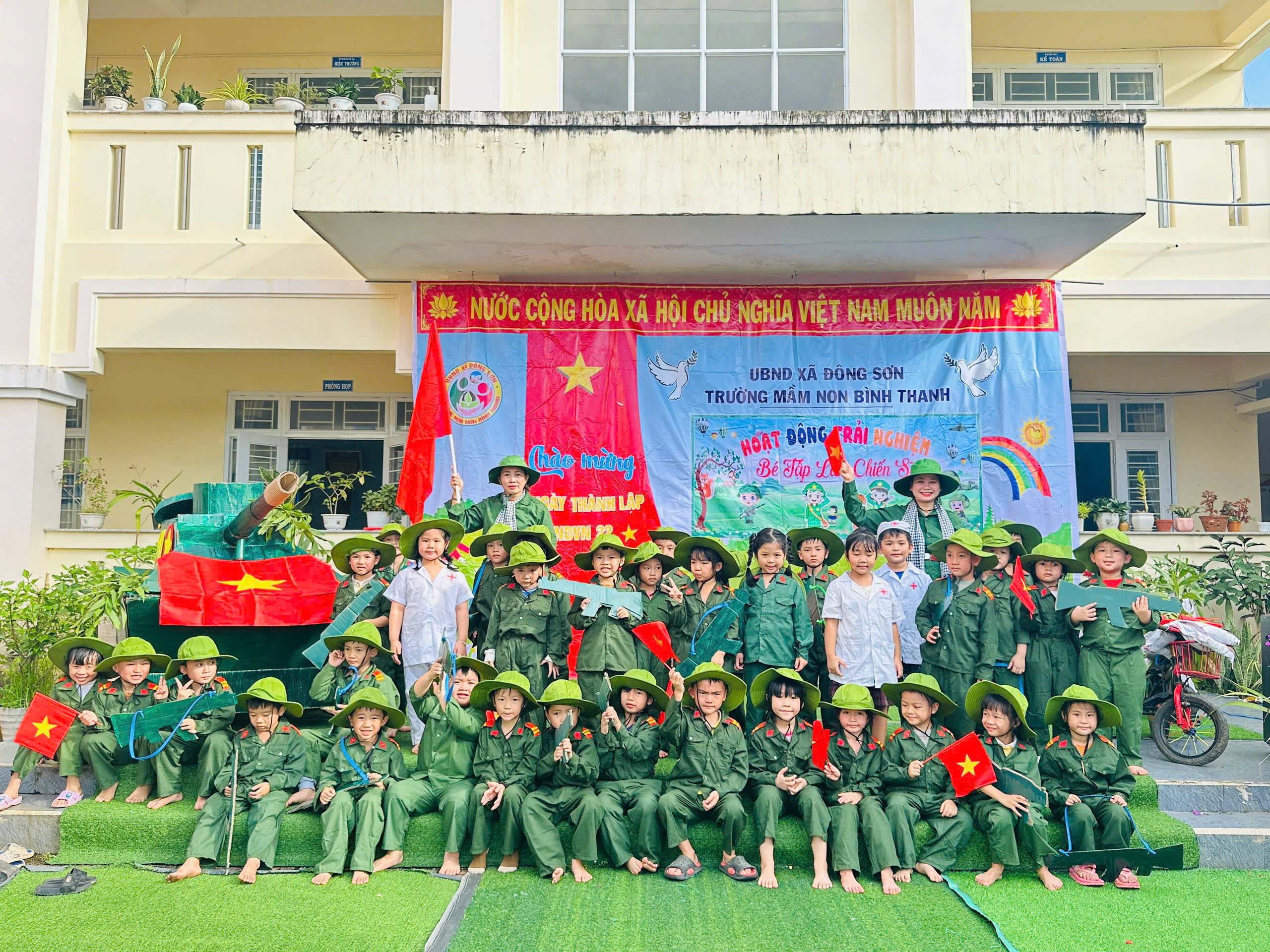 Hướng tới kỷ niệm Ngày thành lập Quân đội nhân dân Việt Nam 22/12, Trường Mầm non Bình Thanh đã tổ chức hoạt động trải nghiệm đầy ý nghĩa với chủ đề “Bé tập làm chiến sĩ”, mang đến cho các bé những khoảnh khắc vừa vui tươi vừa giàu giá trị giáo dục.