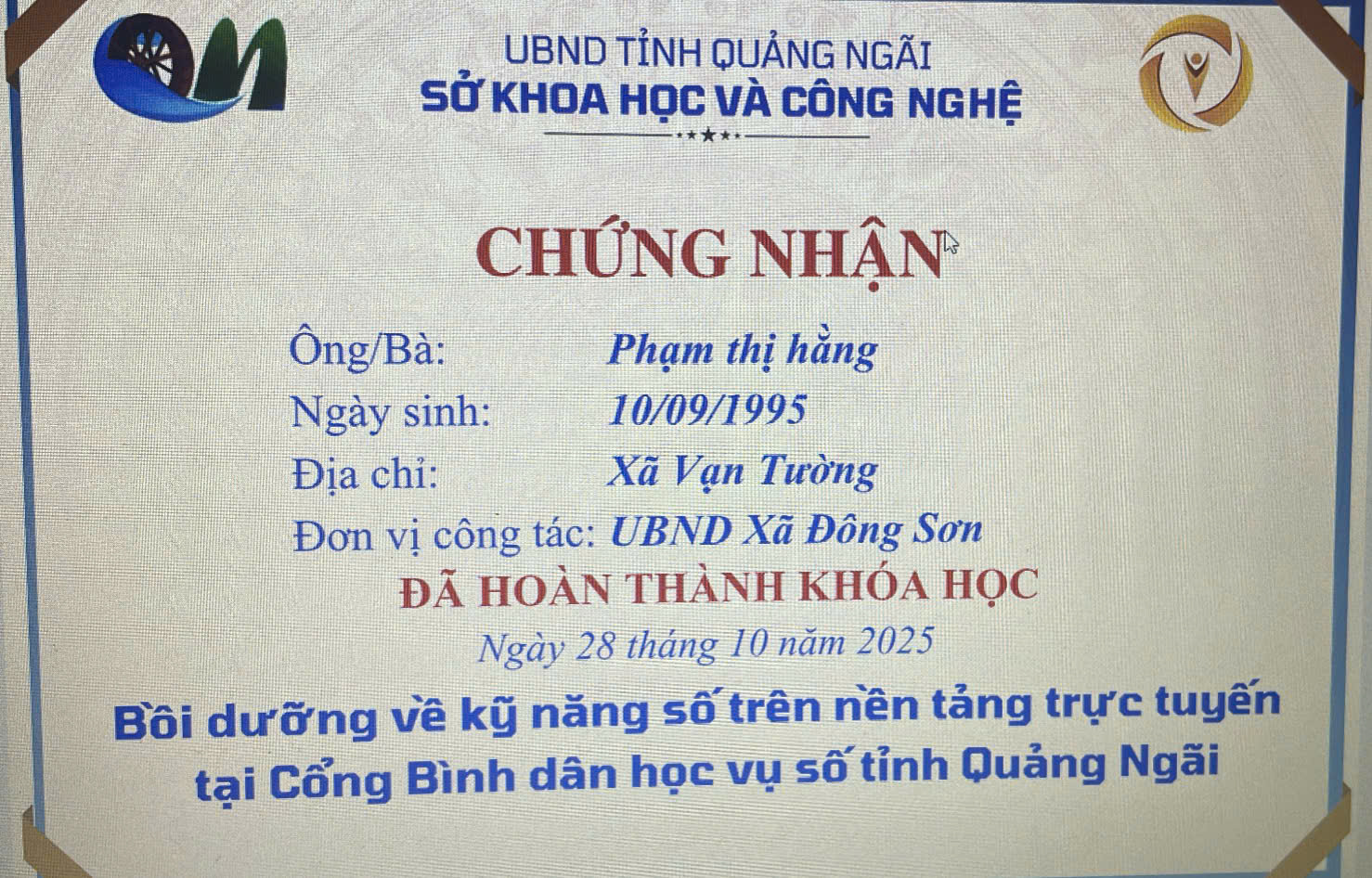Tập thể sư phạm Trường Mầm non Bình Thanh hưởng ứng và tham gia phong trào “Bình dân học vụ số” trên địa bàn xã Đông Sơn, tỉnh Quảng Ngãi
