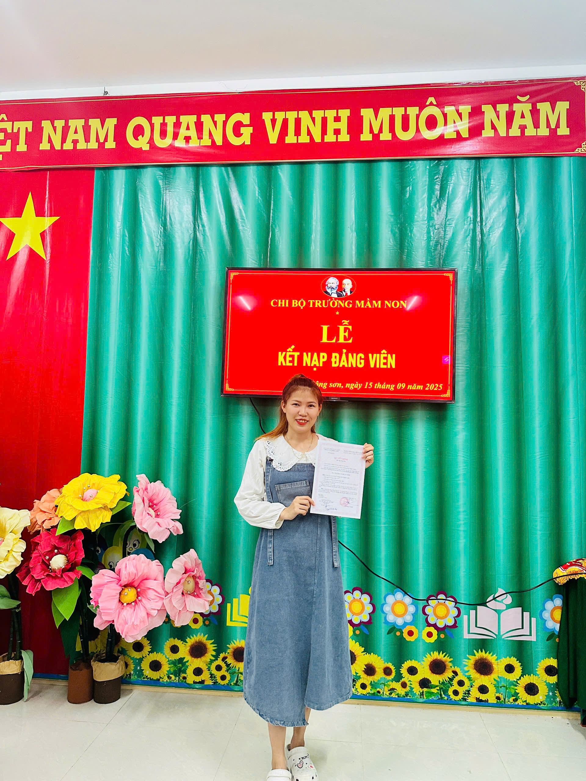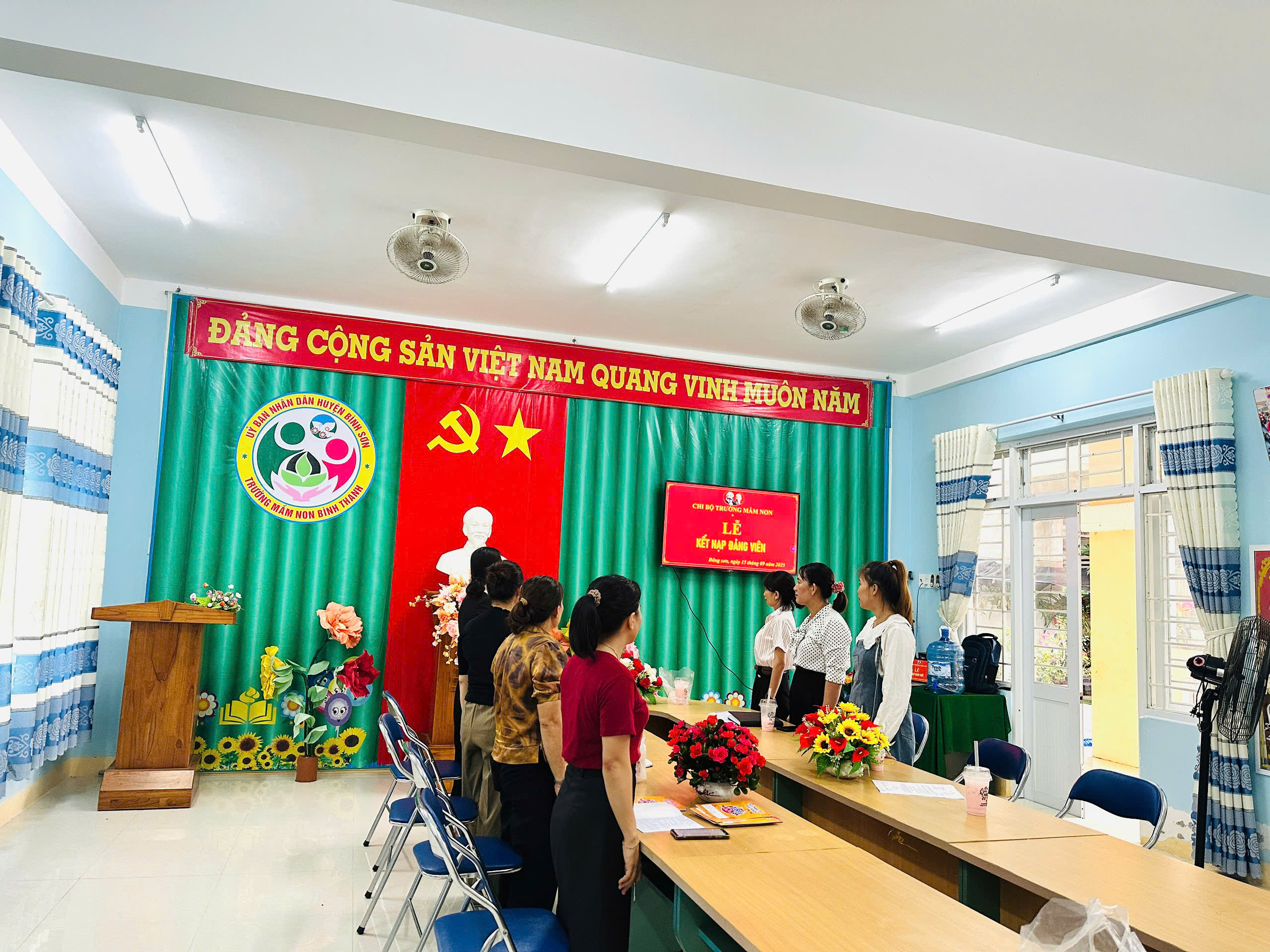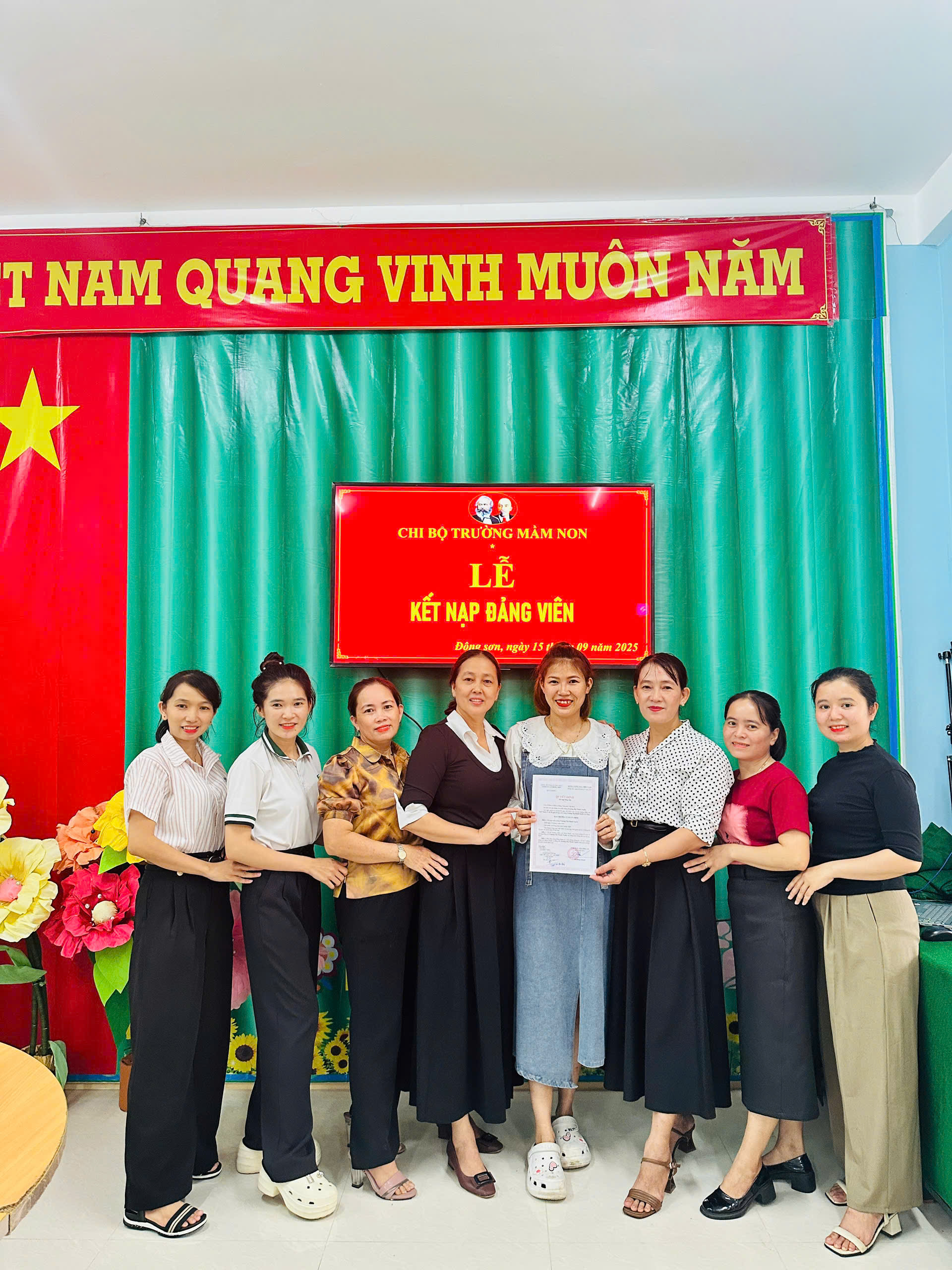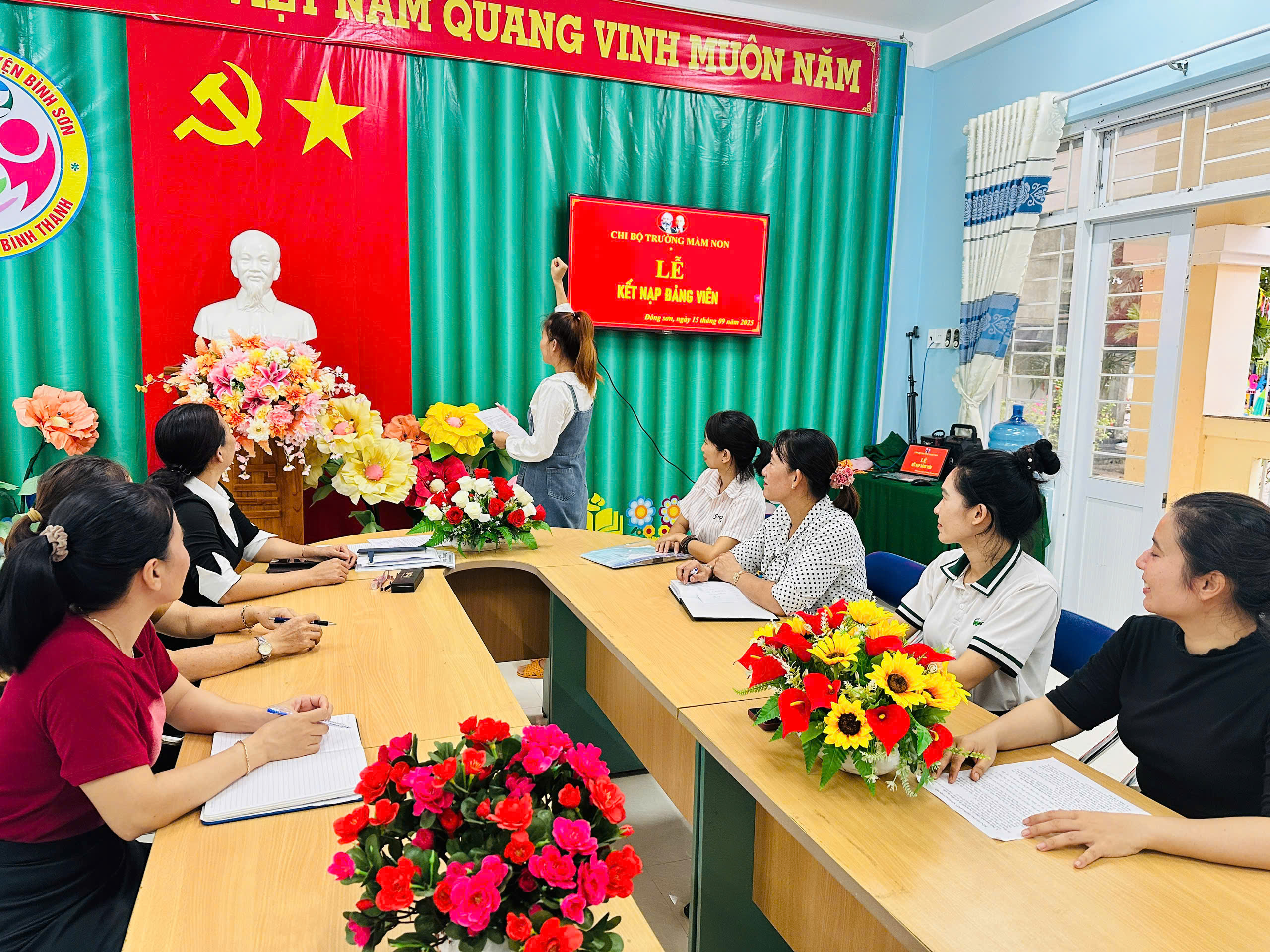 Thực hiện sự chỉ đạo của Đảng ủy xã Đông Sơn, Nghị quyết Đại hội chi bộ Trường Mầm non Bình Thanh về công tác phát triển Đảng viên; căn cứ Quyết định số 23-QĐ/ĐU ngày 09/9/2025 của Ban Thường vụ Đảng ủy xã Đông Sơn về việc kết nạp đảng viên và Quyết định số 24-QĐ/ĐU ngày 09/9/2025 về việc công nhận đảng viên chính thức.